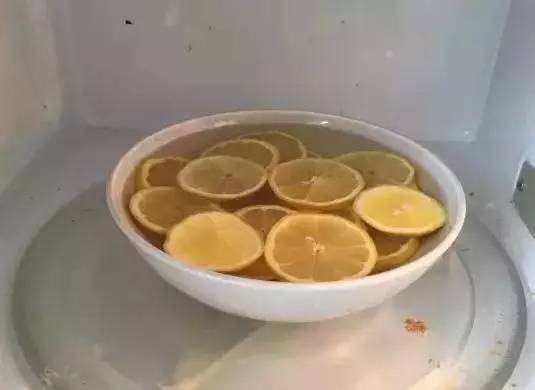 檸檬切片,放入可微波的碗中,加入4~5