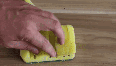 先把海綿放在窗沿上,用筆沿著凹凸處一一描點(diǎn)標(biāo)記,再用剪刀沿著點(diǎn)修剪海綿,使其剛好能安放在窗縫處。倒入適量清潔劑,放上修好的海綿來(lái)回擦拭,不用多久就很干凈啦!