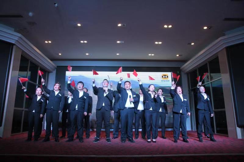 晚會(huì)最后,潔霸公司總經(jīng)理程晉軍和各單位、部門負(fù)責(zé)人共同唱響“大中國”。