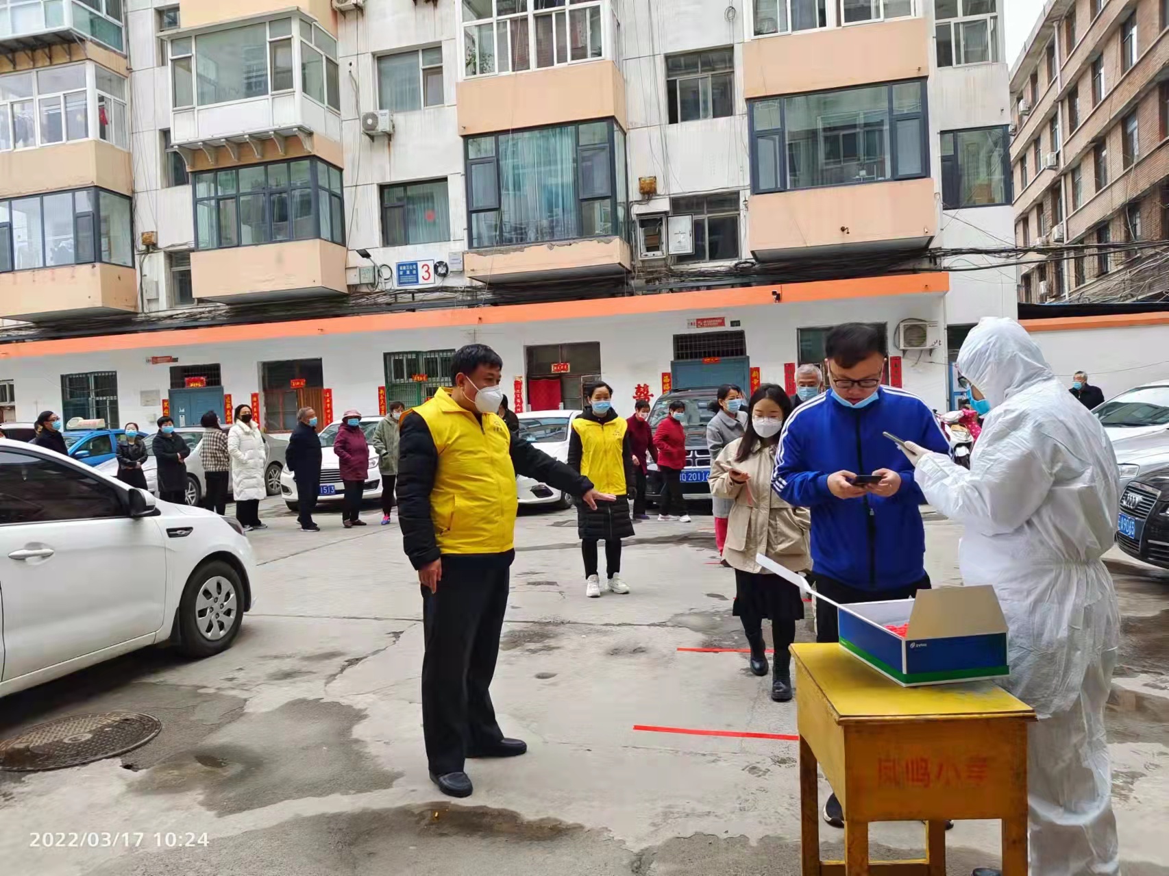 市三建小區(qū)是百潔物業(yè)去年接手的老舊小區(qū)之一。核酸檢測活動現場,他們身著志愿者馬甲,負責維護現場秩序,提醒居民排隊時嚴格遵循“一米線”,同時積極協助小區(qū)居民進行信息登記等各項工作。