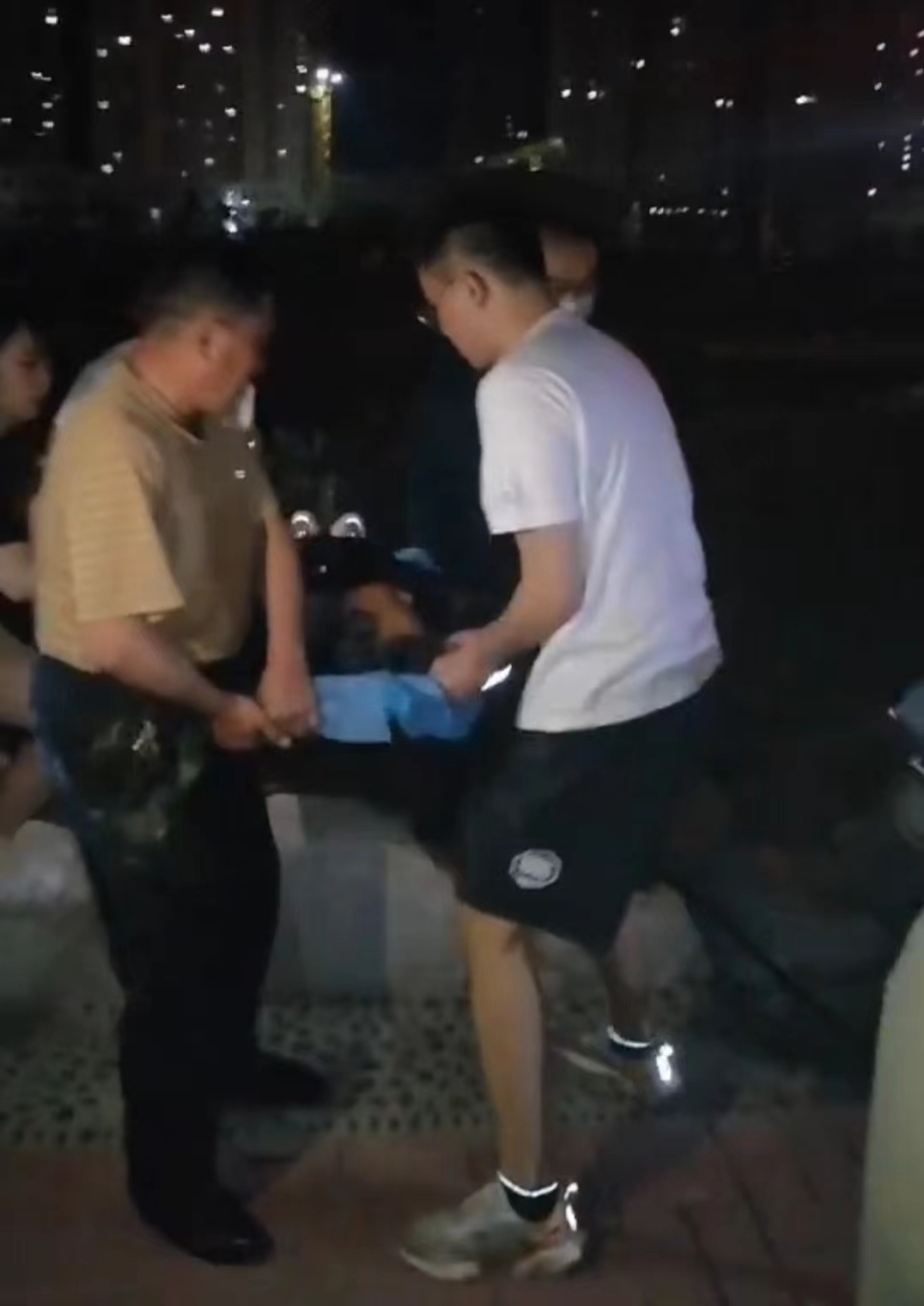 當(dāng)晚10時左右,保安隊長毋海文剛從公園疫情卡口值班結(jié)束,回到管理房,一名年輕女子氣喘吁吁跑到管理房說湖中有人落水,聽到此消息,毋隊長快速向事發(fā)地點跑去。到達(dá)事發(fā)地點后,湖水已浸到落水者頸部,只能看到落水者的臉部。市民已將湖邊設(shè)置的救生圈扔到湖里,毋隊長和身邊一位90后年輕男子迅速跳入湖里,游到落水女子身邊展開施救。晚上湖水較涼,加之落水者渾身已經(jīng)濕透,他們用力兩次才將落水女子平安救上岸。上岸后,落水女子呼吸微弱,觸摸其頸部有輕微脈搏,毋隊長根據(jù)日常急救知識將落水女子采取側(cè)躺位,并拍打起背部,直至落水女子長長呼出一口氣,他的心才放下來。熱心市民撥打了110和120,醫(yī)護(hù)人員趕到現(xiàn)場對落水女子進(jìn)行體征檢查后,毋隊長和醫(yī)護(hù)人員、熱心市民將落水女子抬上救護(hù)車?yán)玲t(yī)院救治。