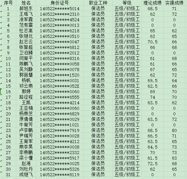 2024年8月24日第32批保潔員初級認(rèn)定人員成績公示