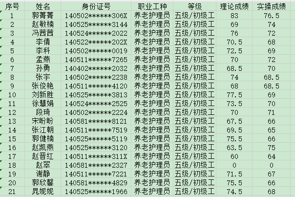 202491日第35批養(yǎng)老護(hù)理員初級(jí)認(rèn)定人員成績(jī)公示