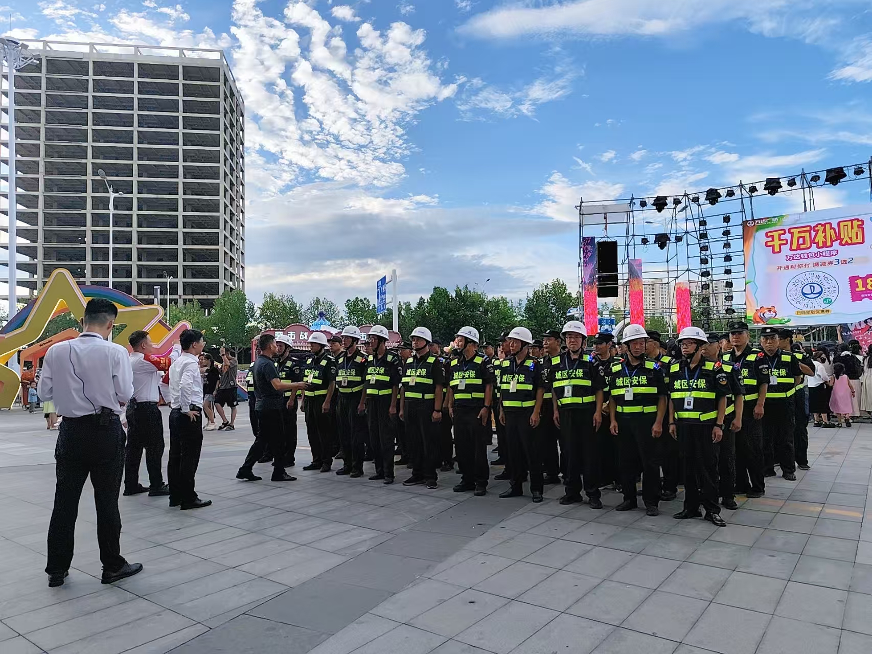 活動期間,城區(qū)保安人員按照既定方案,每天晚上6點(diǎn)到崗到位,配合公安、消防等部門做好秩序維護(hù)、交通疏導(dǎo)及服務(wù)保障等工作。出入口崗位的保安負(fù)責(zé)引導(dǎo)群眾有序進(jìn)出,舞臺周邊的保安重點(diǎn)維護(hù)觀眾秩序,防止擁擠、踩踏等危險情況發(fā)生。盡管每天晚上工作時間長達(dá)6小時,他們時刻保持警惕,沒有絲毫放松,F(xiàn)場人流量一度突破萬人次,但執(zhí)勤保安始終用規(guī)范的動作、耐心的態(tài)度引導(dǎo)人流,以嚴(yán)謹(jǐn)?shù)墓ぷ髯黠L(fēng)和飽滿的精神狀態(tài)為活動保駕護(hù)航。