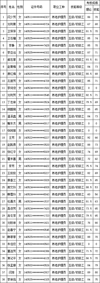 山西潔霸清潔服務(wù)集團(tuán)股份有限公司職業(yè)技能等級認(rèn)定中心現(xiàn)將2025年11月9日認(rèn)定人員成績公示如下: